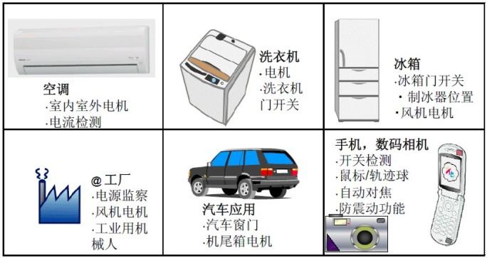 產(chǎn)品廣泛應(yīng)用如:直流無刷電機(jī)、位置檢測、轉(zhuǎn)速檢測、 舞臺燈光、空調(diào)電機(jī)、馬達(dá)、速度和RPM傳感器(車速儀表、轉(zhuǎn)速檢探測)、霍爾接近開關(guān)傳感器(高靈敏無觸點(diǎn)開關(guān)、單極開關(guān))、水流量計、汽車?yán)锍瘫?、熱水器、無刷電機(jī)控制方案配套、相機(jī)鏡頭伸縮位置傳感、精密測磁、自動化控制、通訊、計算機(jī)、航空航天、工業(yè)探傷、民用電器、辦公自動化、汽車、醫(yī)療儀器等領(lǐng)域。